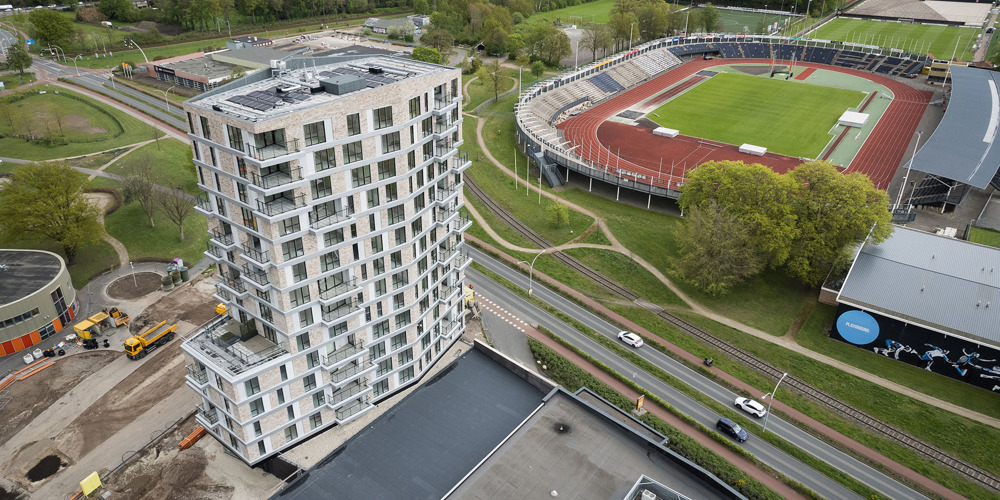 De Apollo Toren in Hengelo biedt 52 moderne appartementen die zijn gebouwd met oog voor duurzaamheid, comfort en innovatie. Dankzij slimme bouwmethoden en circulaire keuzes is de toren klaar voor de toekomst.